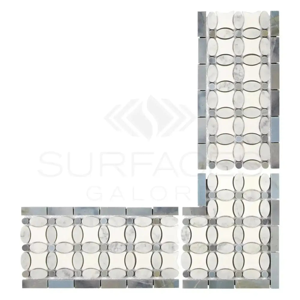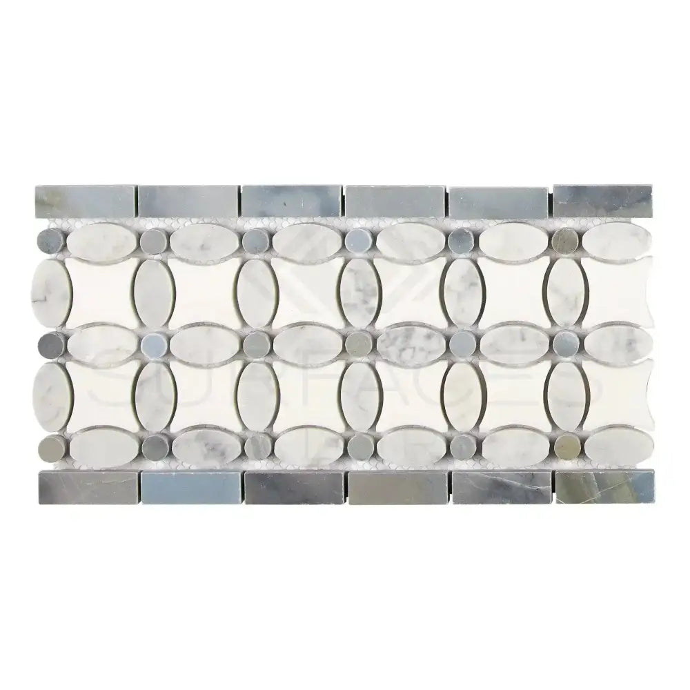 Carrara White Royale 5 3/4X11 1/4 Florida Flower Border (Thassos+White Carrara White Royale(Oval)+Blue-Gray(Dots))