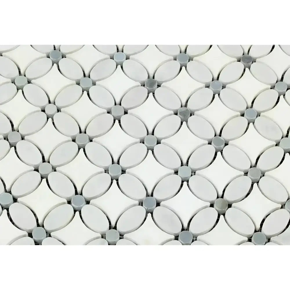 Carrara White Royale Florida Flower Mosaic (Thassos+White Carrara White Royale(Oval)+Blue-Gray(Dots)) Mosaic Marble Tile