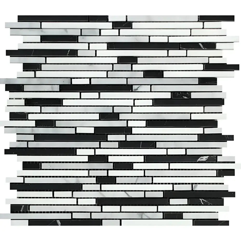 Carrara White Royale Bamboo Sticks (Thassos + Carrara White Royale + Black) Mosaic