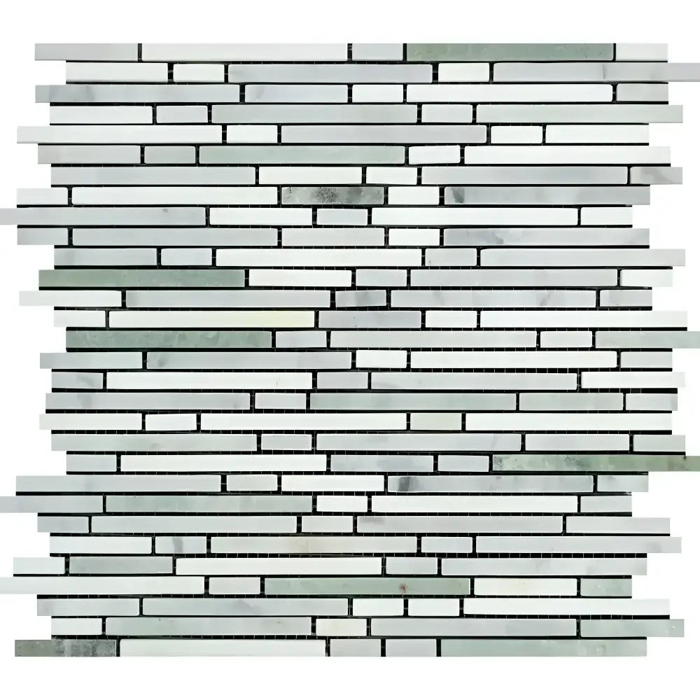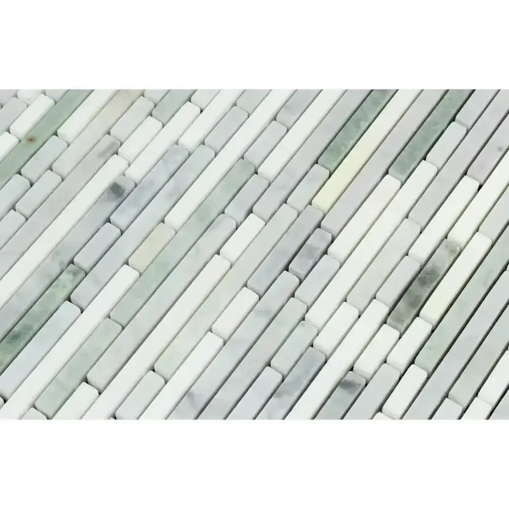 Carrara White Royale Bamboo Sticks (Thassos+Carrara White Royale+Ming Green) Mosaic