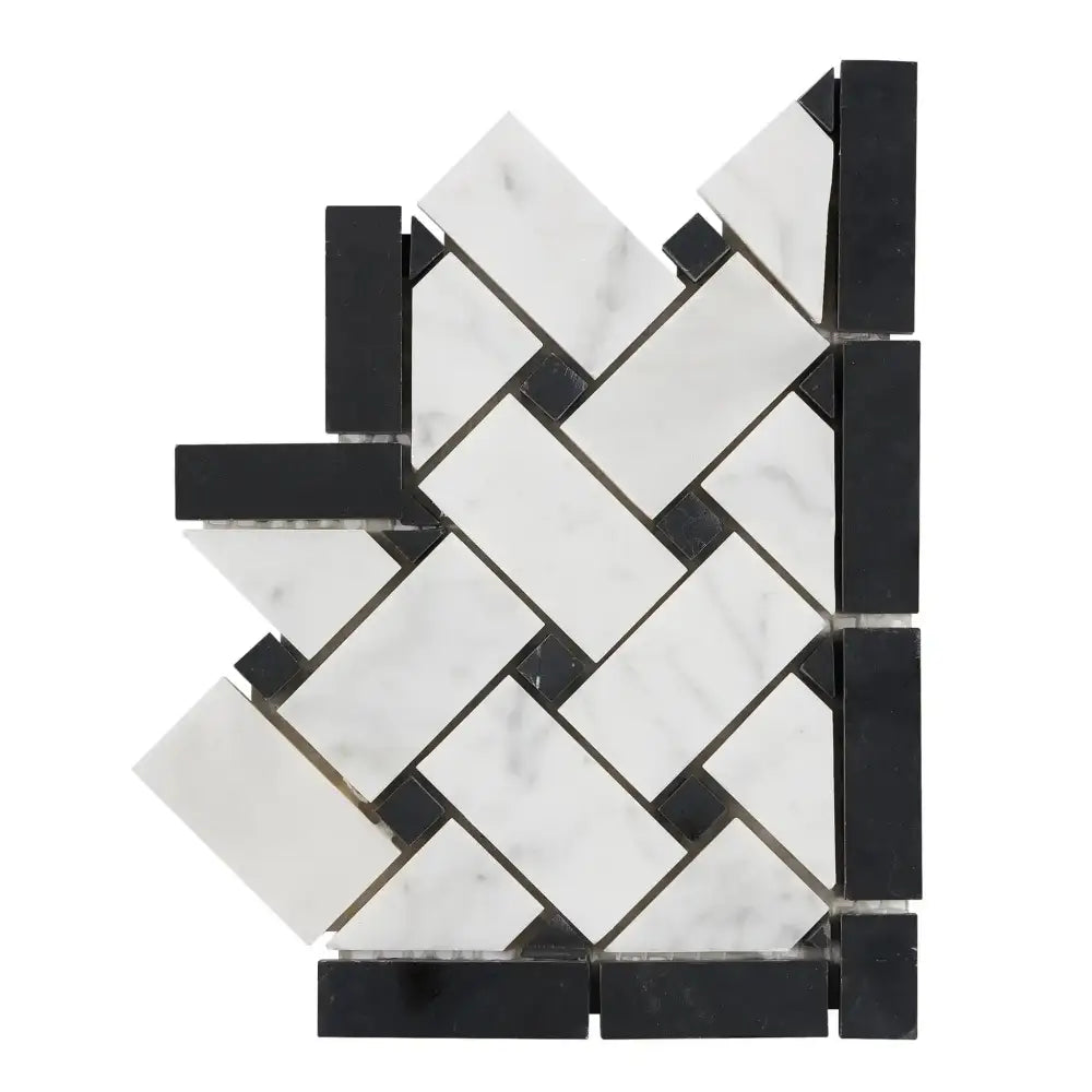 Carrara White Royale Basketweave Border CORNER (w/ Black)