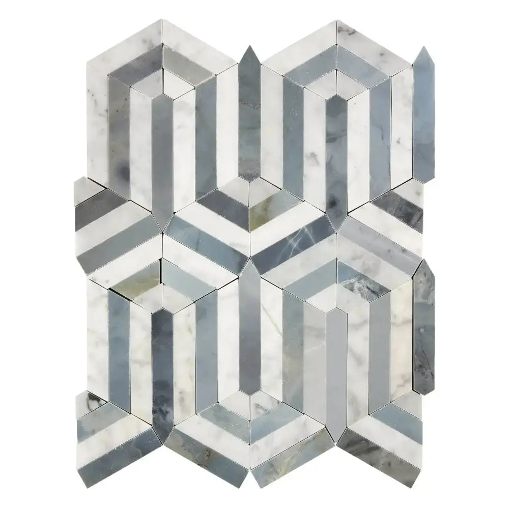 Carrara White Royale Berlinatta Design (w/ Blue-Gray) Mosaic