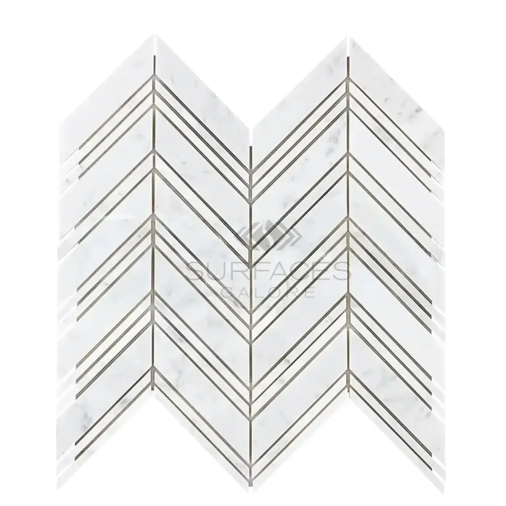 Carrara White Royale Chevron (LARGE) (w/ Carrara White Royale / Carrara White Royale) Mosaic Marble Tile