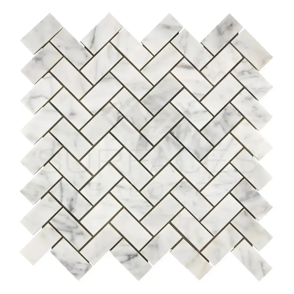 Carrara White Royale Herringbone Mosaic 1X2 Brick Mosaic Marble Tile