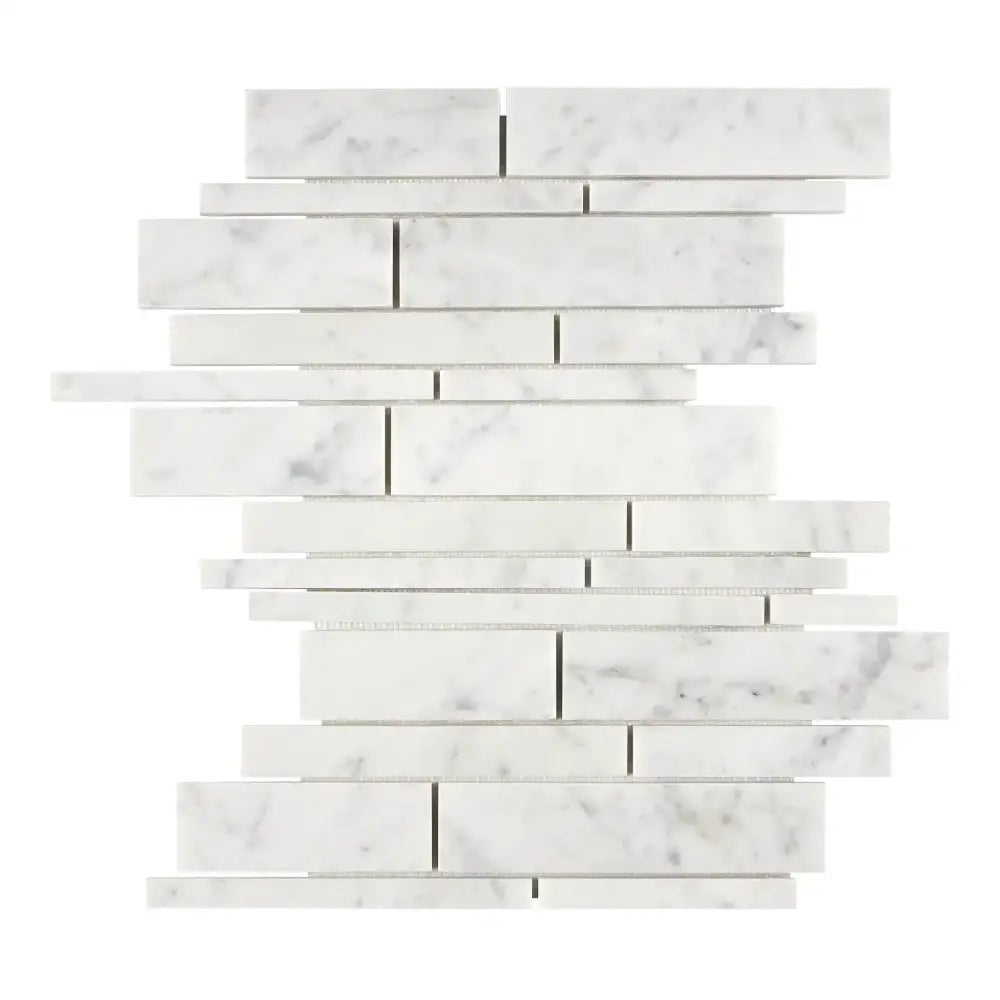 Carrara White Royale Manhattan (Random-Strip) Mosaic Marble Tile