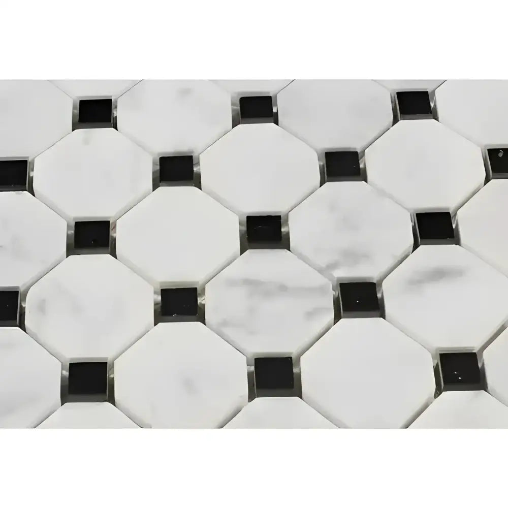 Functionally, Carrara marble boasts remarkable durability and stands up well to routine wear, making it suitable even for busy spaces. Easy to clean and maintain, its timeless beauty is complemented by practical longevity. By selecting Carrara White Octagon Mosaic tiles with black accents, you introduce not only lasting appeal and elevated design but also tangible value to your home or business environment.
