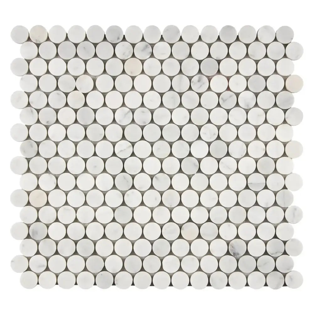 Carrara White Royale Penny-Round Mosaic Marble Tile