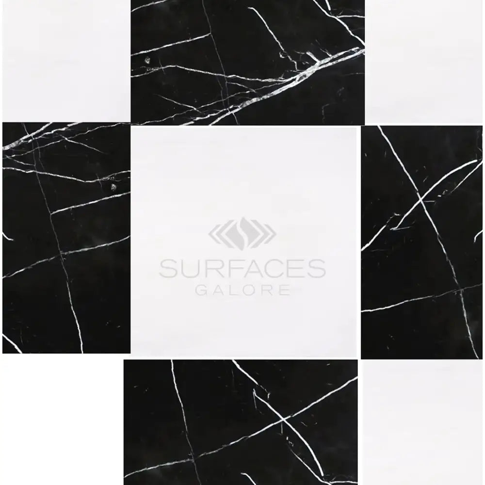 Checkerboard Nero Marquina Prestige Marble and Dolomite Prestige Marble 18X18 Set