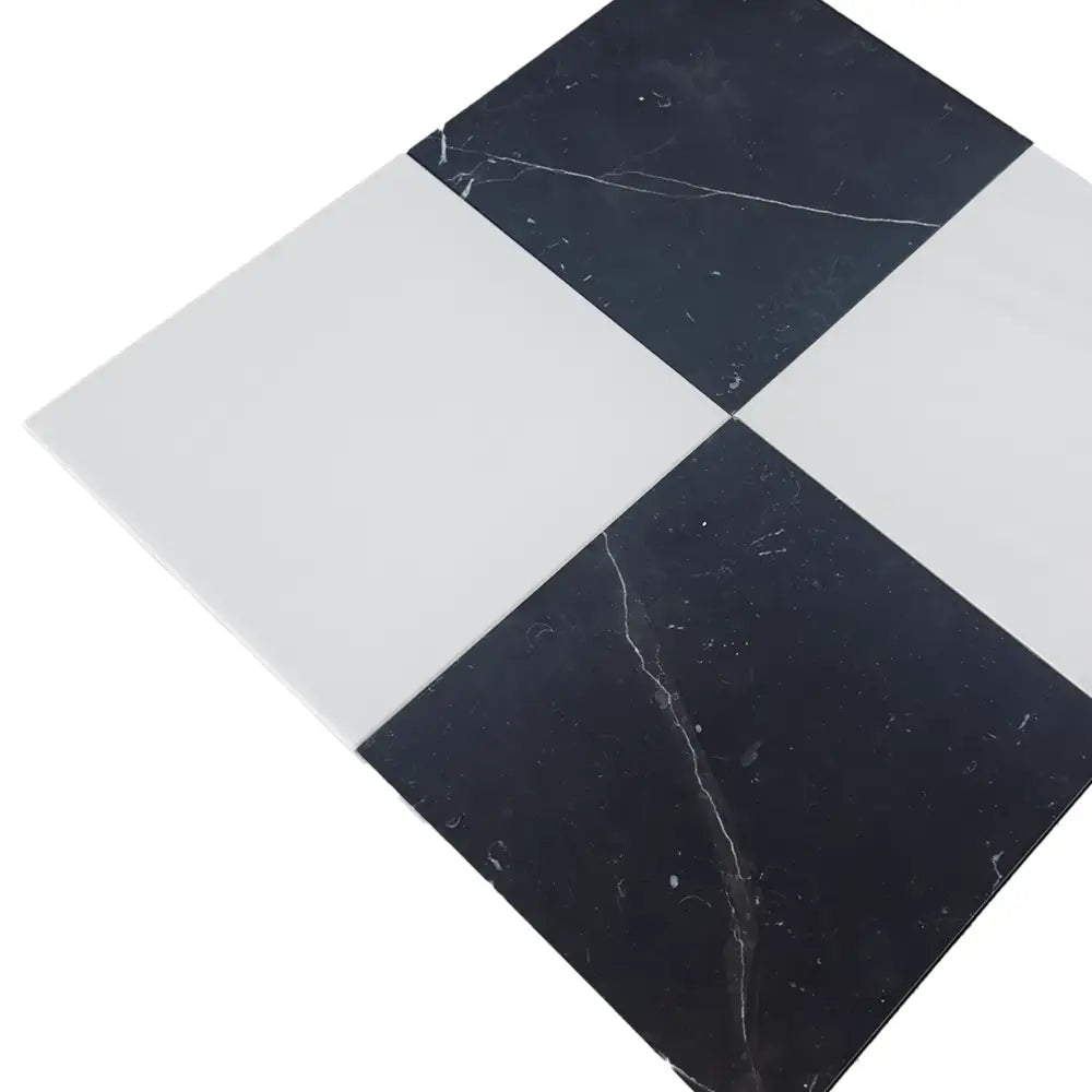 Perfect for floors, walls, and backsplashes alike, these versatile marble tiles offer the flexibility to adapt to your vision—whether rejuvenating residential bathrooms, making a statement in kitchens, or distinguishing upscale commercial spaces. Their durable composition ensures longevity, maintaining their stunning appearance under regular use. With the sophisticated checkerboard motif, this tile set not only enhances the visual interest of any room but also introduces a sense of grandeur that endures through changing trends. Invest in lasting beauty and transform any space with the unmatched charm and craftsmanship of genuine Nero Marquina and Dolomite marble tiles.