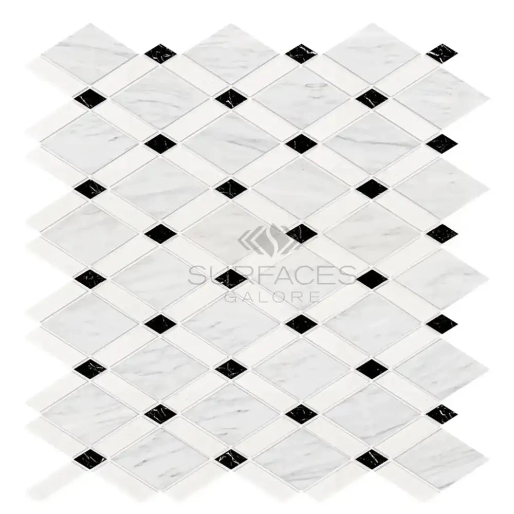 Oriental White Aurora / Asian Statuary Lattice (Thassos/Oriental White Aurora White Aurora/Black) Marble Mosaic