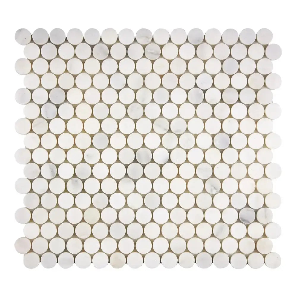 Oriental White Aurora / Asian Statuary Penny-Round (Single Color/Oriental White Aurora White Aurora) Marble Mosaic