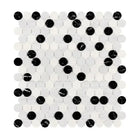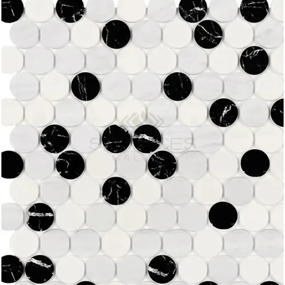 Oriental White Aurora / Asian Statuary Penny-Round (Single Color/Oriental White Aurora White Aurora/Thassos/Black) Marble Mosaic