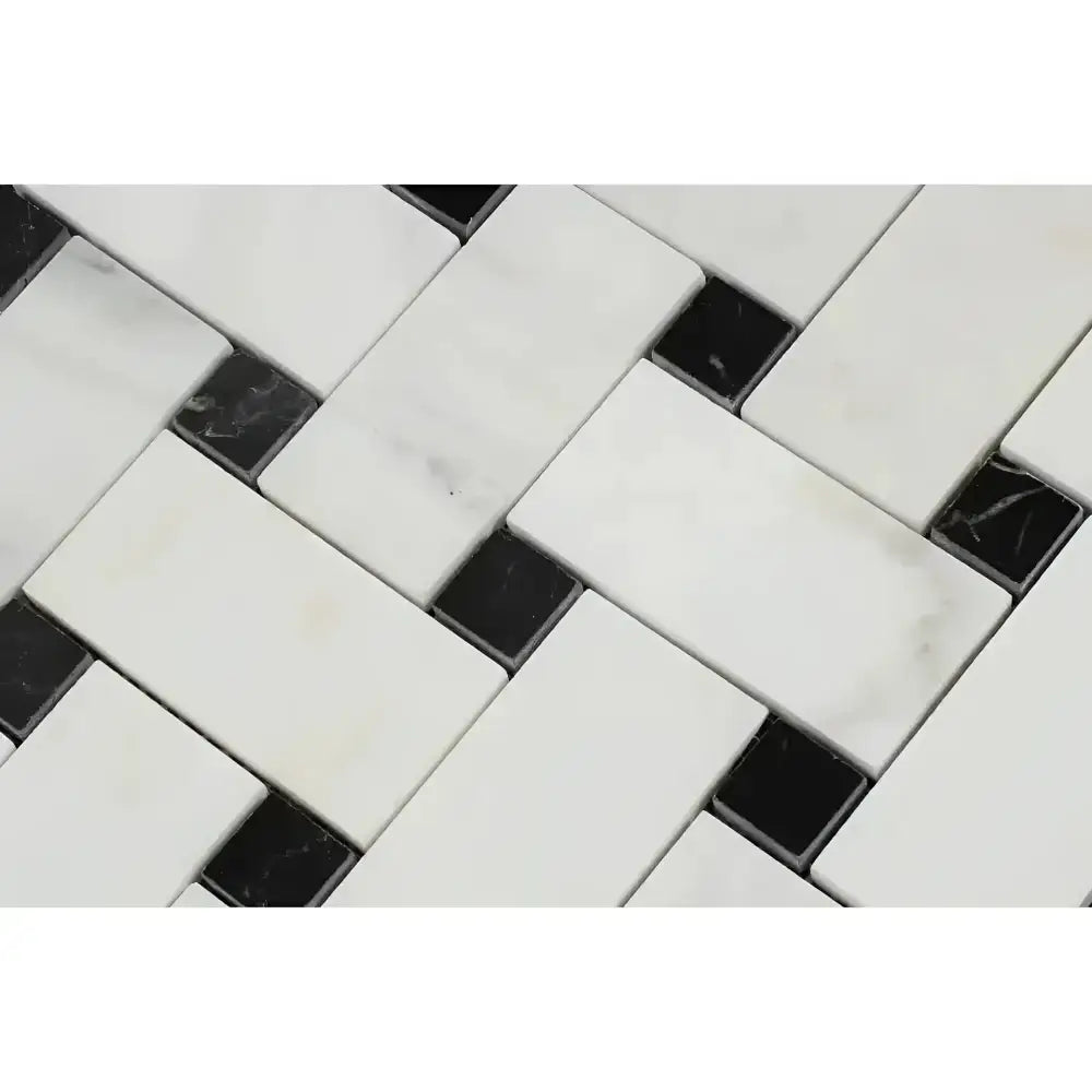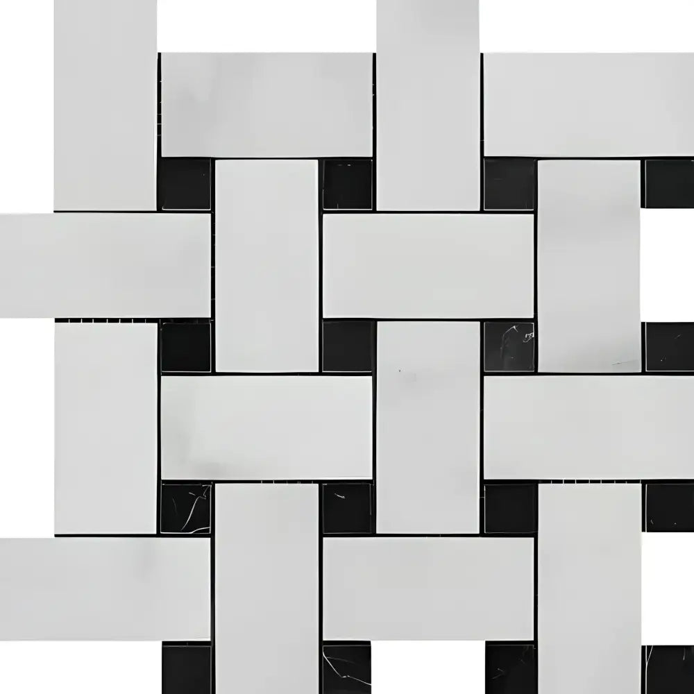 Oriental White Aurora / Asian Statuary Basketweave w/Black-LARGE Marble Mosaic