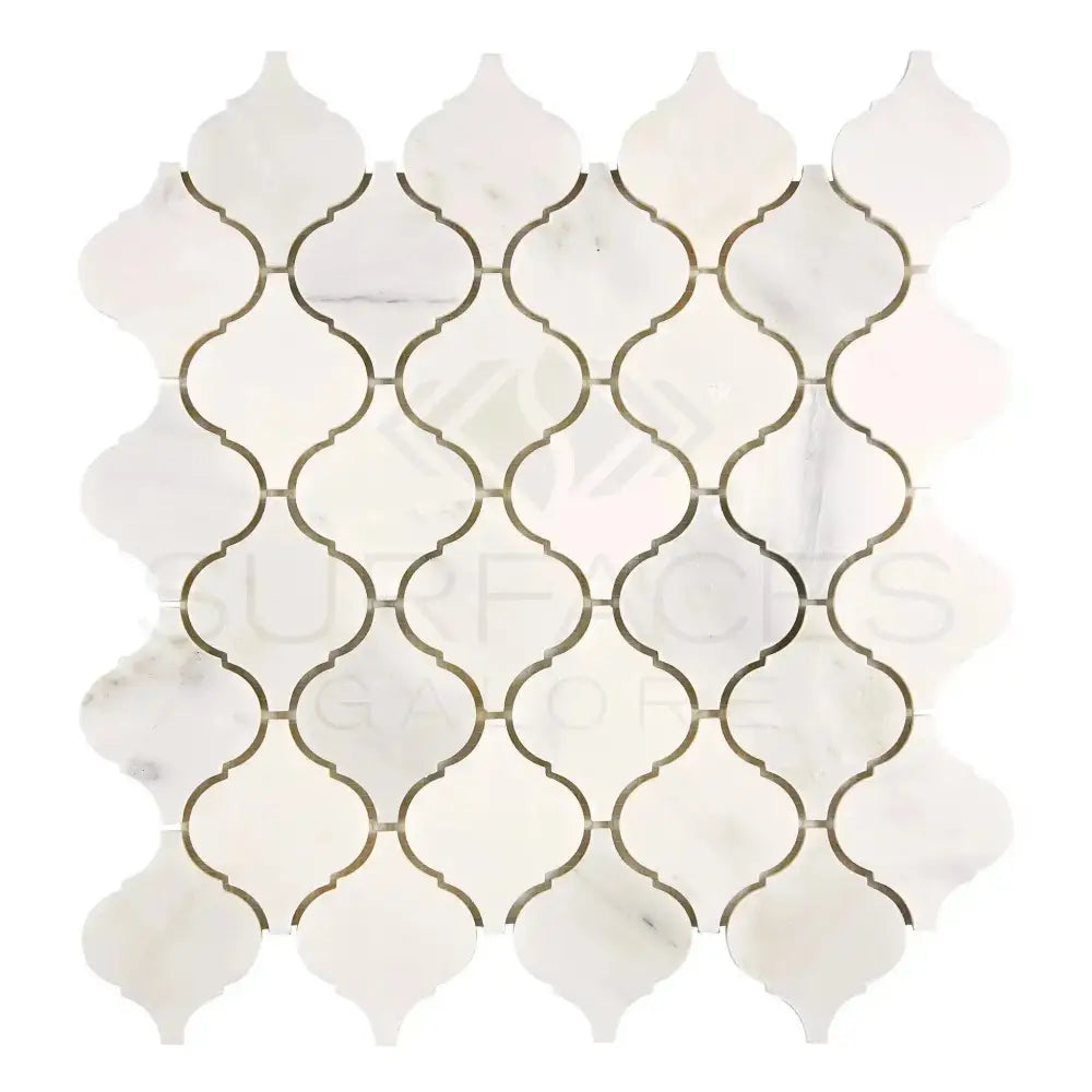 Oriental White Aurora / Asian Statuary Lantern 3inch (Arabesque/Moroccan/Baroque) Marble Mosaic
