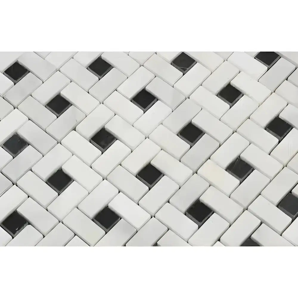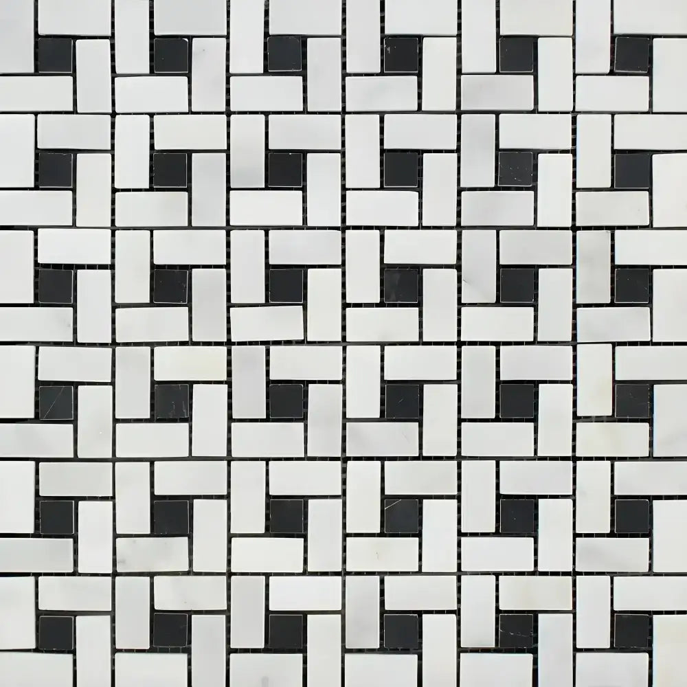 Oriental White Aurora / Asian Statuary Pinwheel Mosaic (w/Black) Marble Mosaic