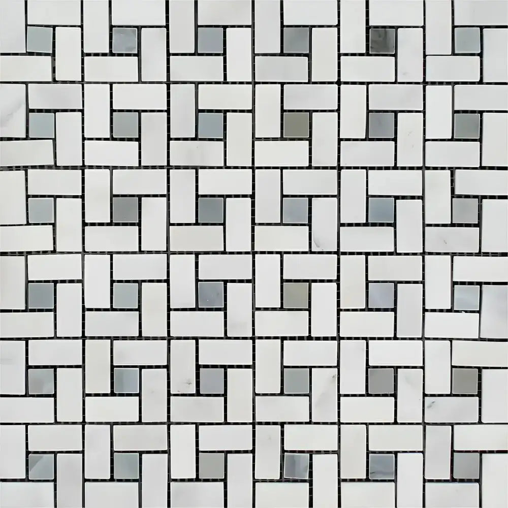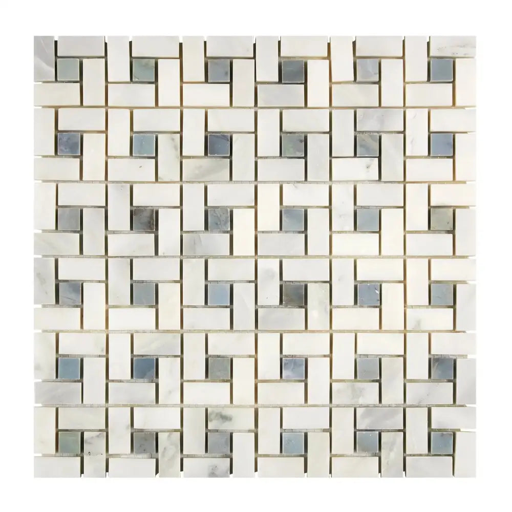 Oriental White Aurora / Asian Statuary Pinwheel Mosaic (w/Blue-Gray) Marble Mosaic