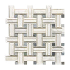 Oriental White Aurora / Asian Statuary Triple-Weave (w/Blue-Gray) Marble Mosaic