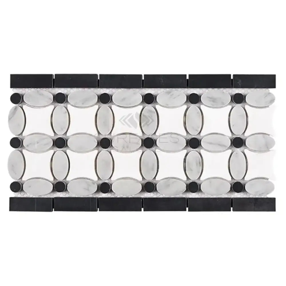 Thassos Supreme 5 3/4X11 1/4 Florida Flower Border (Thassos Supreme +White Carrara(Oval)+Black (Dots) Marble
