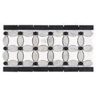 This luxurious marble border features intricate design elements, skillfully blending the pristine Thassos marble with distinguished White Carrara accents. Delicate black dots punctuate the floral motif, introducing bold visual contrast, depth, and sophistication. This refined combination produces a stunning, timeless look, making it particularly well-suited for dramatic backsplashes, elaborate shower floors, and statement accent walls. The resulting effect creates a harmonious balance between subtle texture and eye-catching pattern, expressing refined taste and enhancing the atmosphere of any room.
